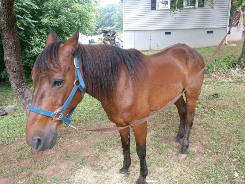Description: Bay gelding wearing a blue halter was found running down Hwy 296 heading away from the Hwy 101 in the Woodruff/Greer SC area.