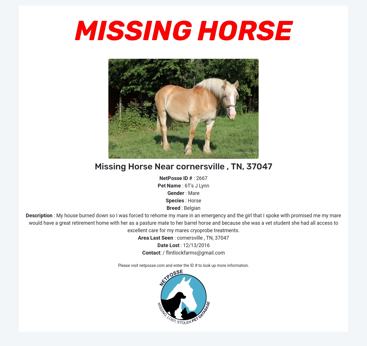 MISSING Horse - Gypsy/Great Gatsby