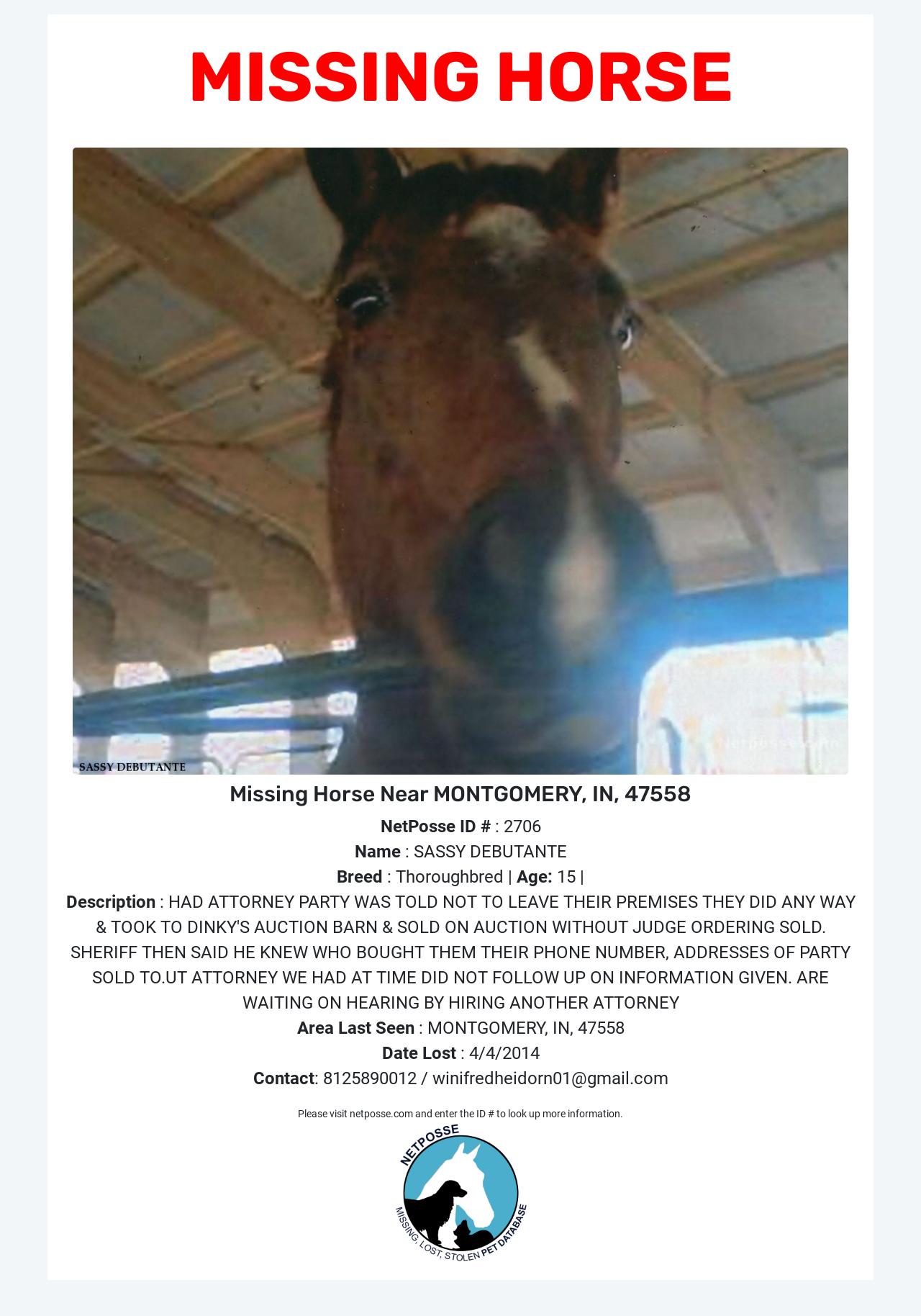 Description: HAD ATTORNEY PARTY WAS TOLD NOT TO LEAVE THEIR PREMISES THEY DID ANY WAY & TOOK TO DINKY'S AUCTION BARN & SOLD ON AUCTION WITHOUT JUDGE ORDERING SOLD. SHERIFF THEN SAID HE KNEW WHO BOUGHT THEM THEIR PHONE NUMBER, ADDRESSES OF PARTY SOLD TO.UT ATTORNEY WE HAD AT TIME DID NOT FOLLOW UP ON INFORMATION GIVEN. ARE WAITING ON HEARING BY HIRING ANOTHER ATTORNEY