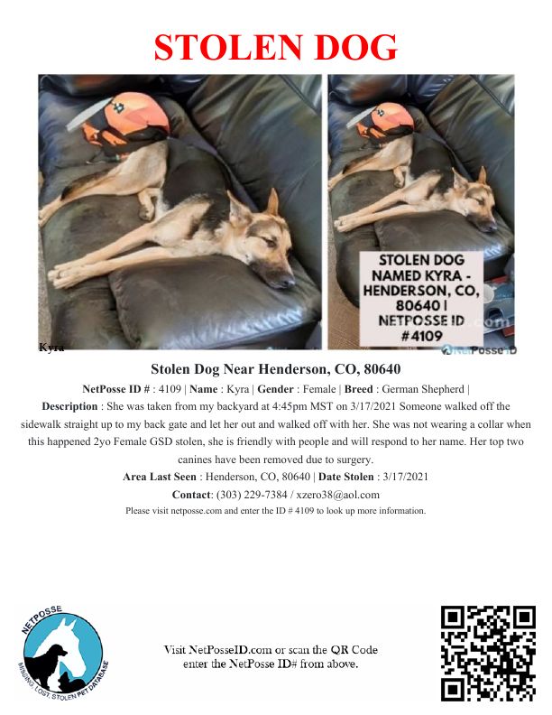 Description: She was taken from my backyard at 4:45pm MST on 3/17/2021
