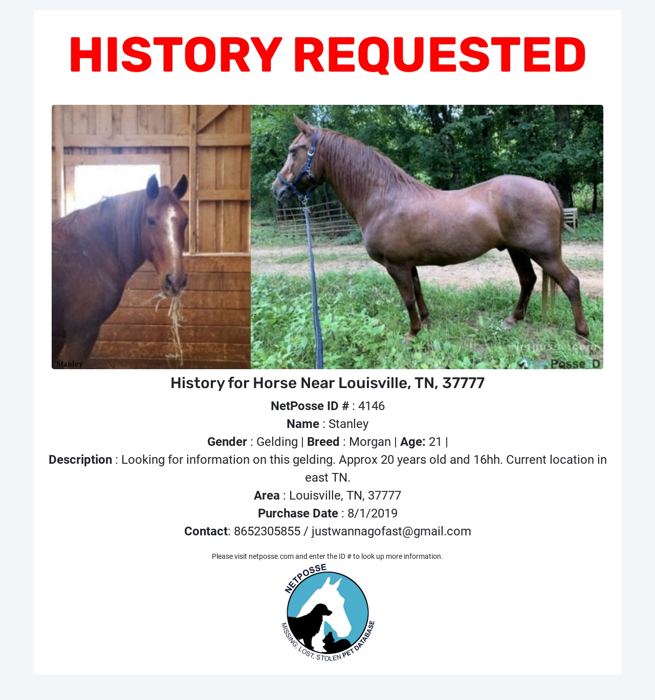 NetPosse Alert reposted today on our Facebook page, Stolen Horse International-NetPosse Missing and Stolen Equine.