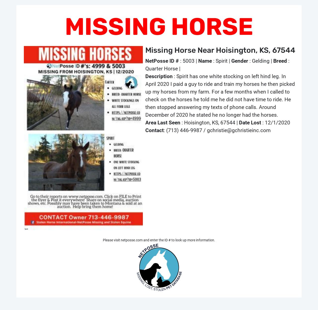 MISSING Horse - Carter