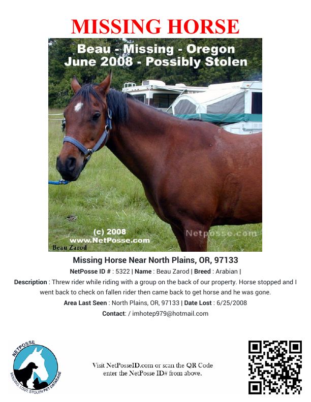 Description: Threw rider while riding with a group on the back of our property. Horse stopped and I went back to check on fallen rider then came back to get horse and he was gone.