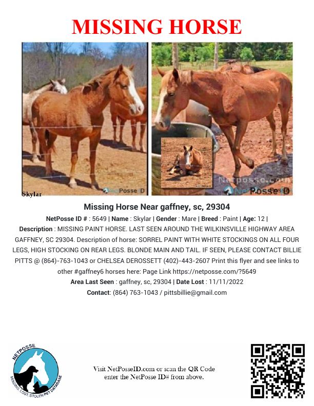 Area Last Seen: gaffney, sc, 29304
