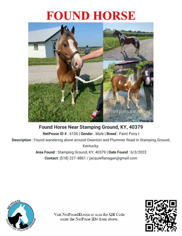 Description: Found wandering alone around Owenton and Plummer Road in Stamping Ground, Kentucky.