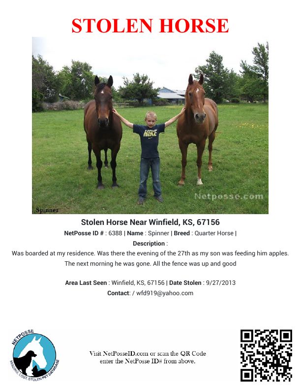 Description: Was boarded at my residence. Was there the evening of the 27th as my son was feeding him apples. The next morning he was gone. All the fence was up and good