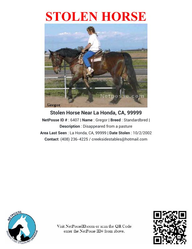 Description: Disappeared from a pasture