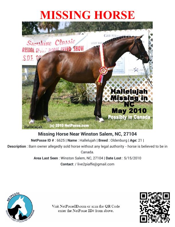 Description: Barn owner allegedly sold horse without any legal authority - horse is believed to be in Canada.