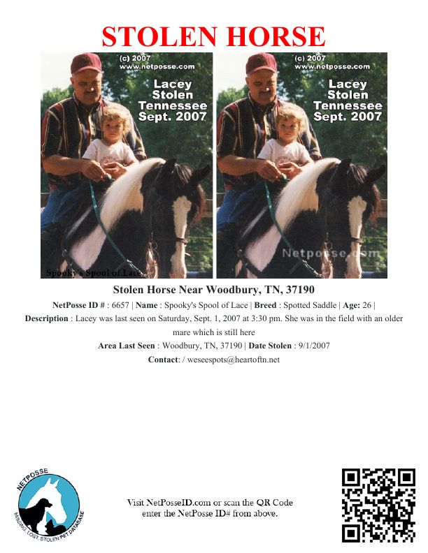 Stolen Horse named Spooky's Spool of Lace - Woodbury, TN, 37190 #6657