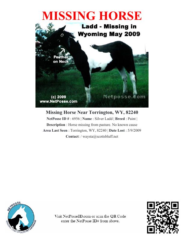 Description: Horse missing from pasture. No known cause
