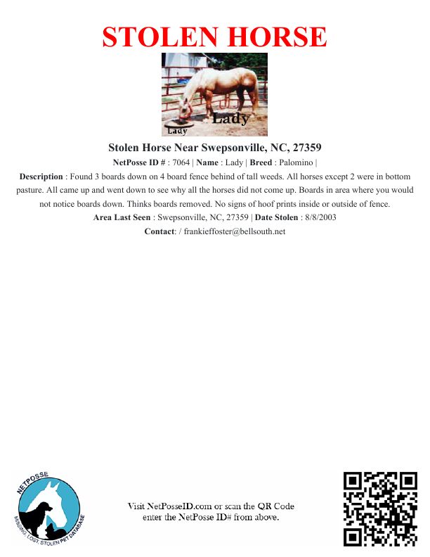 Area Last Seen: Swepsonville, NC, 27359