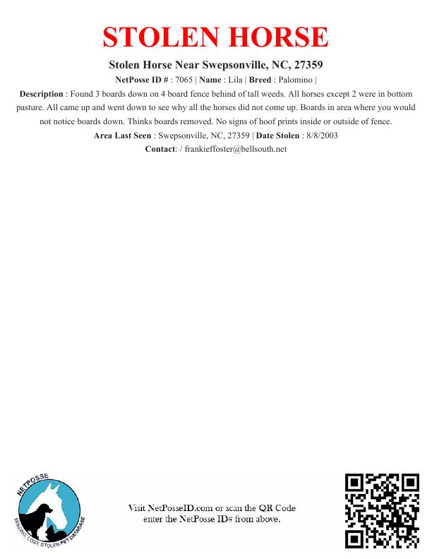 Area Last Seen: Swepsonville, NC, 27359