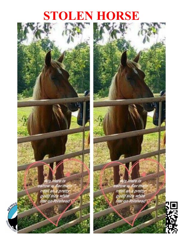 Description: Someone stole my three horses between Wednesday night or Thursday Sept 7, 2017. If you see these horses or know anything about this please contact ASAP!!