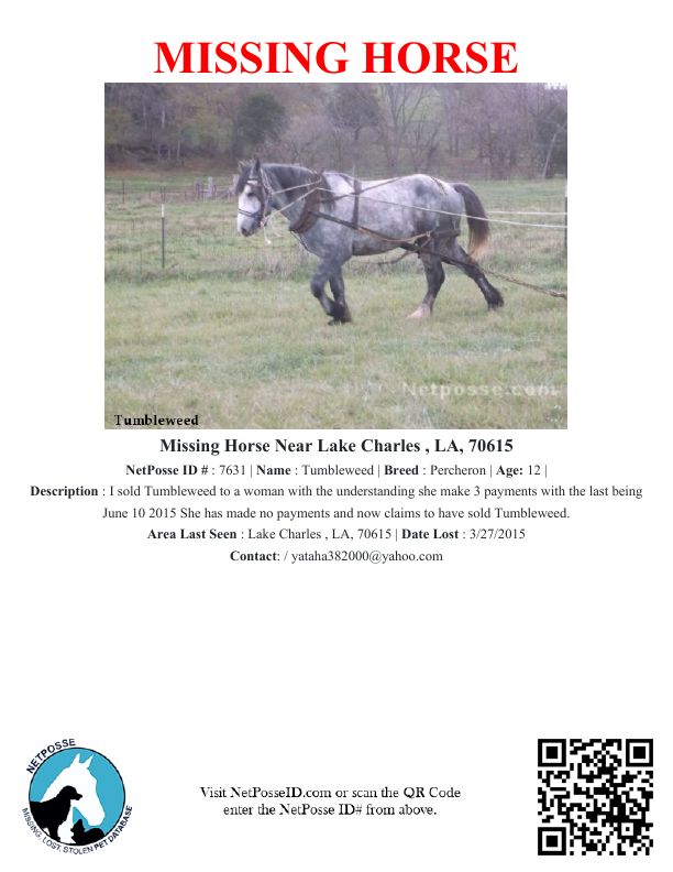 Description: I sold Tumbleweed to a woman with the understanding she make 3 payments with the last being June 10 2015 She has made no payments and now claims to have sold Tumbleweed.