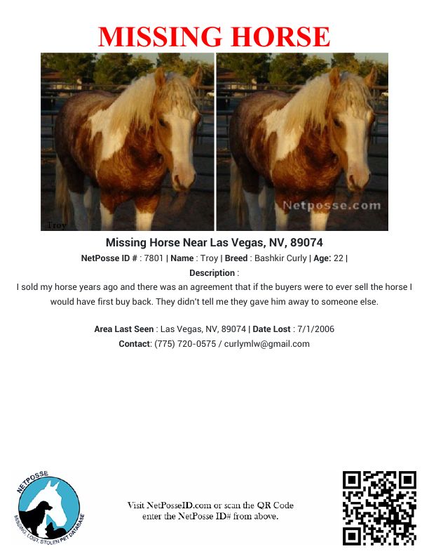 Description: I sold my horse years ago and there was an agreement that if the buyers were to ever sell the horse I would have first buy back. They didn't tell me they gave him away to someone else.