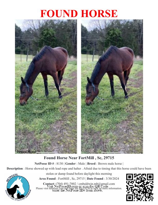 Description: This horse was going down the road and came to my pasture and met my horses at the gate