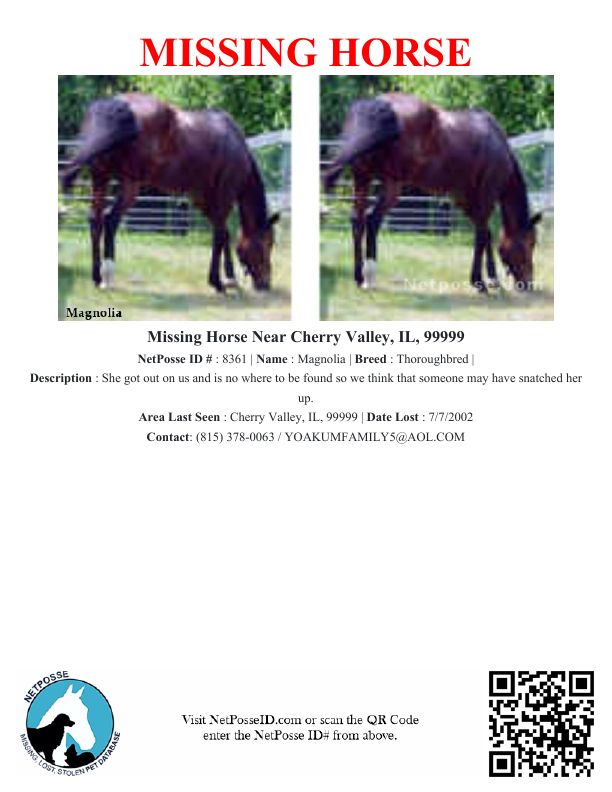 Description: She got out on us and is no where to be found so we think that someone may have snatched her up.