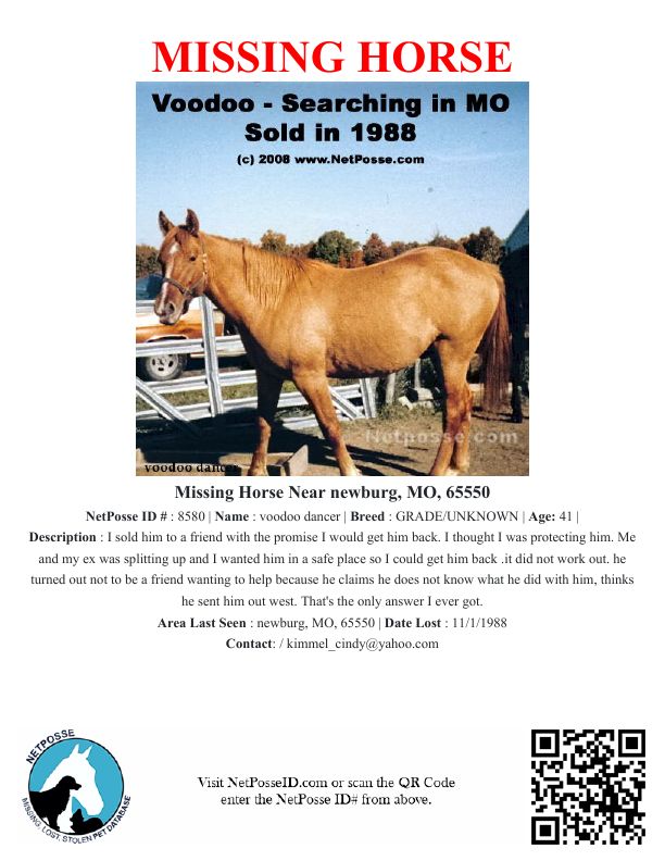 Description: I sold him to a friend with the promise I would get him back. I thought I was protecting him. Me and my ex was splitting up and I wanted him in a safe place so I could get him back .it did not work out. he turned out not to be a friend wanting to help because he claims he does not know what he did with him, thinks he sent him out west. That's the only answer I ever got.