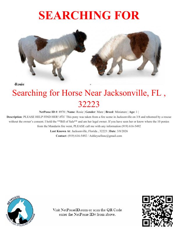 Name: Rosie Gender: Mare Species: Horse Breed: Miniature