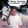 Description : Stormy was my childhood horse when I was 12 years old. I purchased her from a gal who originally bought her from a lady who is now deceased but owned the famous Pony Rides in Reseda in 1991. She was about 6 years old at that time and her name was GiGi before I owned her. When I bought her I changed her name to Stormy. She was never registered to my knowledge. I sold her in 1993 to a man who was planning to take her to a stable in Sunland, CA (in the L.A. region). I have not heard from him since then and my parents threw all the info away. I boarded Stormy at White Oaks Stables in Chatworth, CA (off Topanga Cyn). This was where the man came to ride her and this was where she left in his trailer. I can't even remember his name.