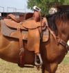 Description : Coats Saddle & tack, 14" flex tree with drop rigging, tooling with barbed wire border and chocolate suede seat. Stolen from horse trailer on property