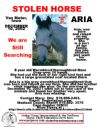 Description : Aria - big grey warmblood / thoroughbred mare - was born and raised on our farm. She and her brother stick together like glue. On the morning of Dec. 10, 2002, I went out to take care of the animals and found her brother very upset. Aria was missing.